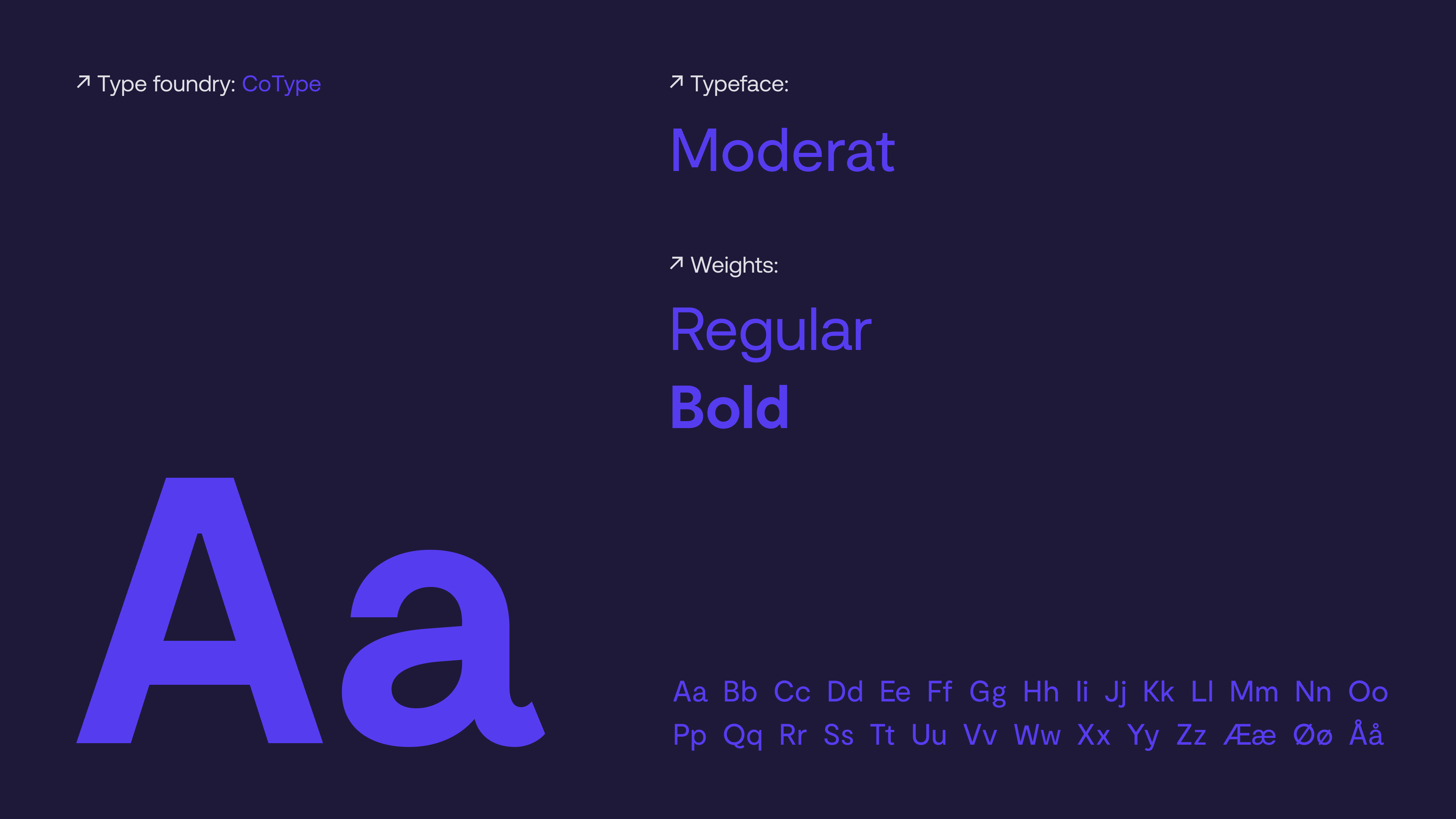 Tightype’s Moderat has the perfect combination of intricate details in the lighter weights, such as the humanist inspired tapering of the terminal or the double bowl g, and earthshattering punch in the heavier weights that made it a good fit for the visual expression of the