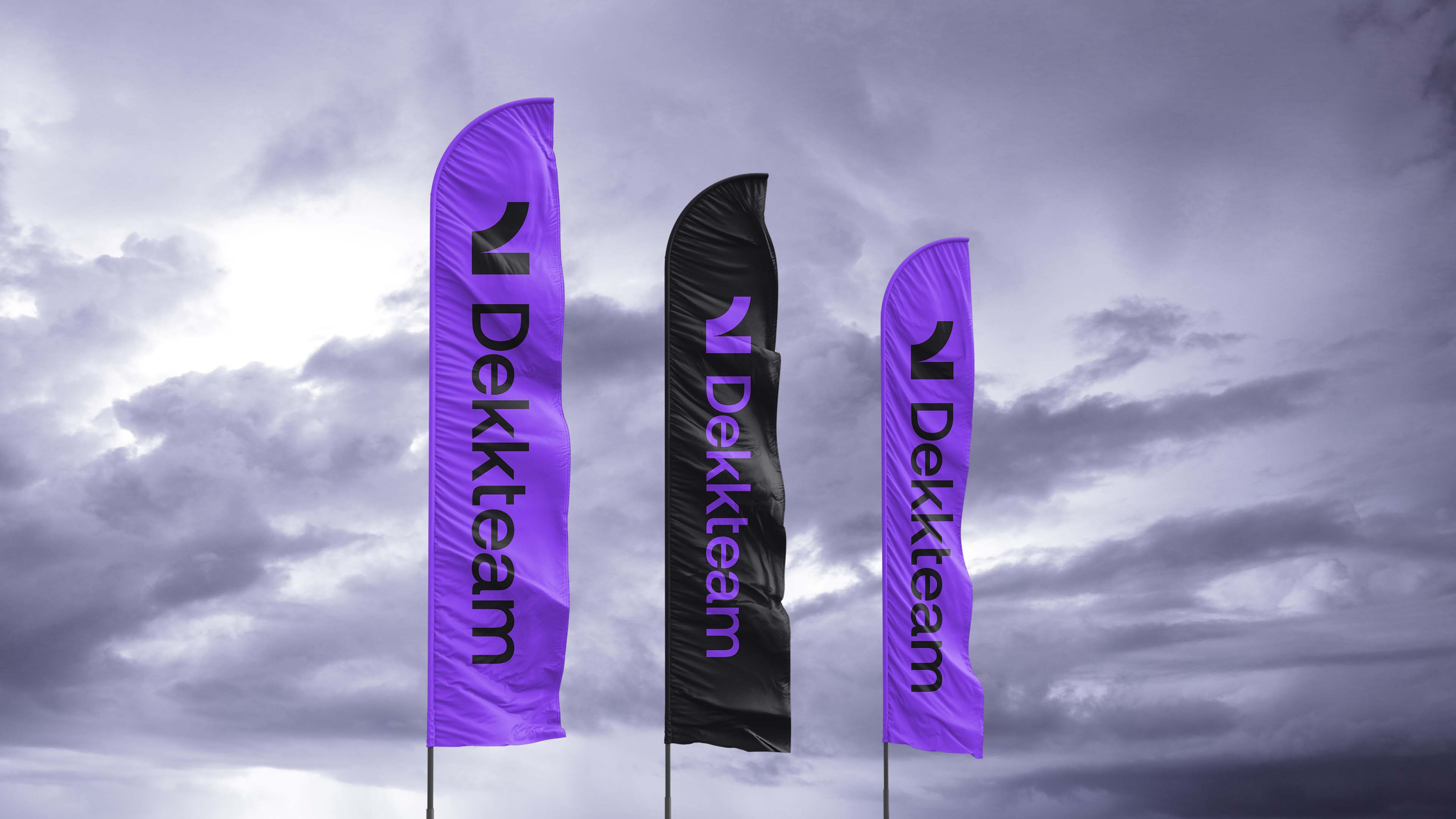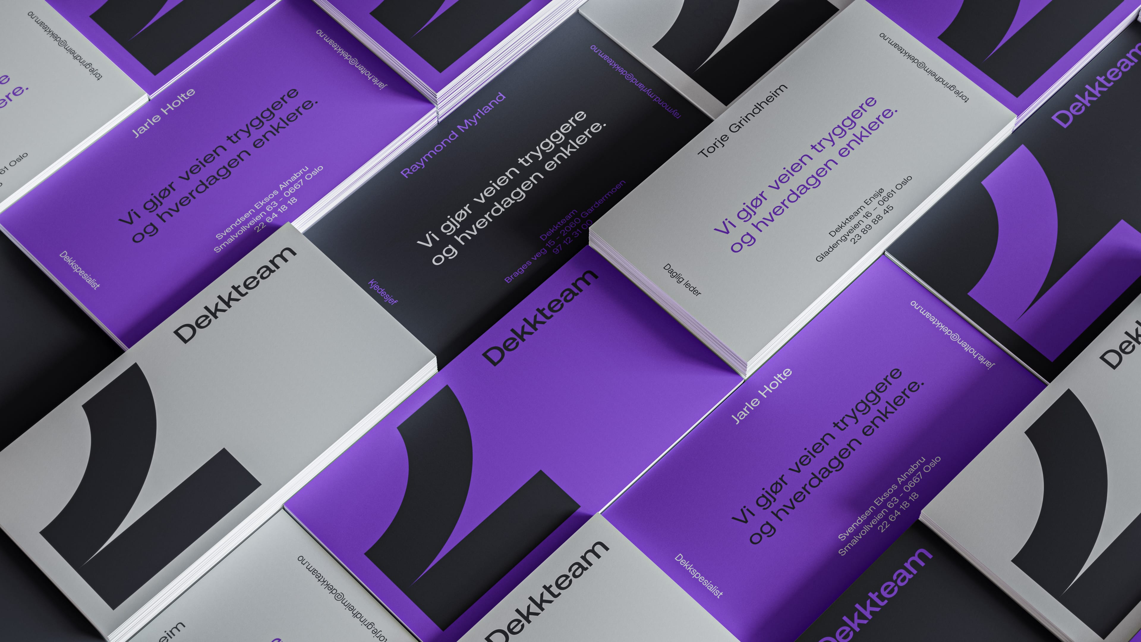 In modernising the Dekkteam brand, we got rid of a whole bunch of greytones, emphasised photography together with a softened white and black, and suggested an energetic purple that either works as an accent with photography or as a fill on plain coloured surfaces.