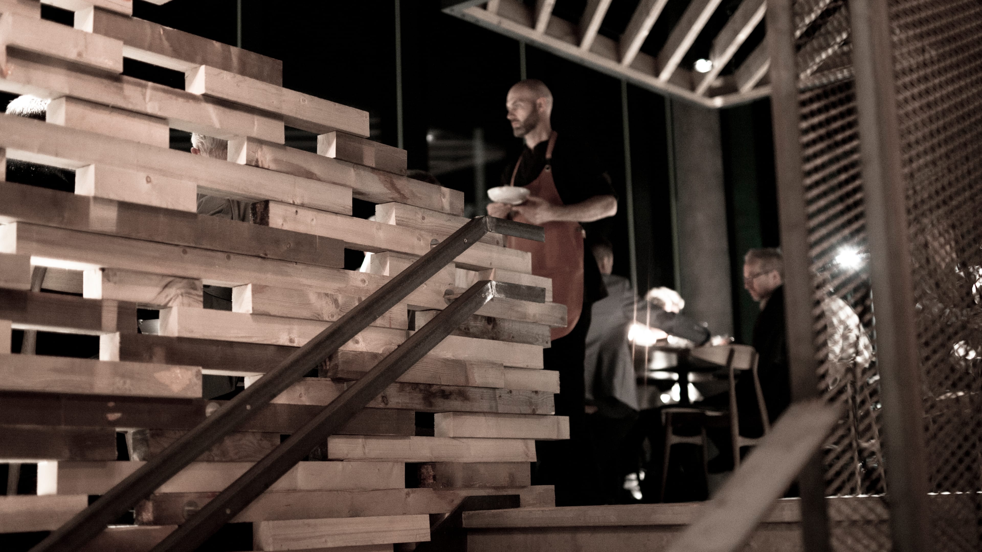 The modern but heritage-inspired interior were central in the graphic profile. A visual link between the centerpiece of the restaurant – an asymmetric wooden staircase – and the way light coming through the holes became the foundation for a visual pattern.